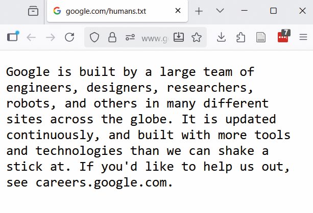 Še pred desetimi leti je bil internet drugačen, bolj sproščen. Google je tedaj v šali na svoje domene postavil tudi datoteko killer-robots.txt, v kateri je za agenta T-1000 in T-800 prepovedal dostop do Larryja Pagea in Sergeya Brina. Referenca na franšizo Terminator bi bila težko bolj očitna. Kakšna spletna stran ima še danes tudi datoteko humans.txt, ki je namenjena ljudem. V praksi se ne uporablja, pred desetimi leti pa ja zaživela kot napol šaljiv antipod robots.txt. Še vedno jo nudita The New York Times in Google.