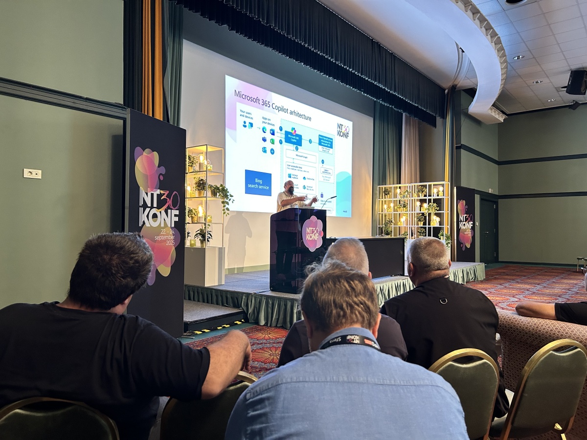 Podrobnejši pogled pa vendarle razkrije, da to ni več »Microsoftova konferenca«. Zelo težko je bilo zaslediti Microsoftov logotip – ni ga bilo na velikem odru, ne na majicah in niti v aplikaciji NTK, razen tam, kjer so navedeni vsi ostali sponzorji. Seveda pa se večina predavateljev še vedno giblje v Microsoftovih krogih in zato predstavlja Microsoftove tehnologije. Predavatelj z drugega konca sveta se je med svojo predstavitvijo komajda še spomnil, da bi moral ob naštevanju orodij umetne inteligence omeniti tudi Microsoft Copilot. Nihče mu ni zameril.
