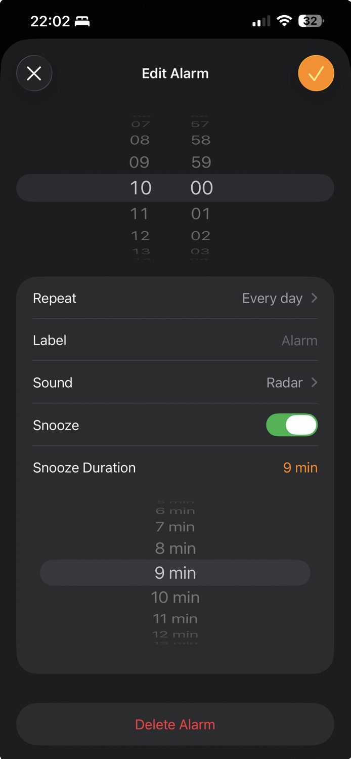 Velika novost je možnost prilagajanja dolžine dremeža pri alarmih, kar je ena izmed najbolj zaželenih funkcij zadnjih let. Do zdaj je bil privzeti dremež nastavljen na devet minut, kar izvira še iz časa mehanskih budilk. Pri teh zaradi omejitev zobnih mehanizmov ni bilo enostavno nastaviti 10-minutnega intervala, zato so se inženirji odločili za minuto manj. Čeprav digitalne naprave teh omejitev nimajo, se je ta tradicija dolgo obdržala tudi na telefonih iPhone. Dolžino dremeža nastavimo v aplikaciji Clock, tako da odpremo obstoječo budilko in pod Snooze Duration izberemo vrednost med eno in petnajstimi minutami. Nastavitev velja zgolj za posamezno budilko, zato jo moramo ponovno nastaviti vsakič, ko ustvarimo novo.